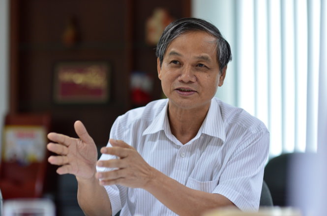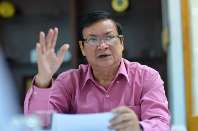 PGS.TS Mai Thành Phụng – chuyên gia nông nghiệp phát biểu trong buổi tọa đàm Phân bón giả – tác hại thật sáng 15-6 tại tòa soạn báo Tuổi Trẻ – Ảnh: Quang Định